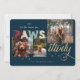 Envoyez votre joie et votre positivité de vacances à votre famille et à vos amis cette saison de vacances avec notre thème de chien amusant et festif 3 animal photo collage carte de Noël de vacances. Carte de vacances idéale pour les amoureux des animaux. Design présente un design festif bleu marine et multicolore "Pawsitivity" est conçu dans une combinaison amusante et élégante de typographie couleur et faux script or. Des empreintes de pattes multicolores ornent la carte d'un plan en trois photos pour afficher vos photos spéciales de chien de compagnie. Personnalisez avec la signature familiale et l'année. L'envers présente un design empreinte de patte amusant multicolore et faux or qui complète le design avant. Oeuvre et design de Moodthology Papery.