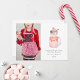 Illustration d'un milkshake à la menthe poivrée dans un pot Mason rouge et rose surmonté de crème fouettée, de bonbons à la menthe poivrée, de canne de bonbon et de cookie de Noël en forme d'arbre de Noël. Le texte dit : "Je vous souhaite une douce saison des fêtes" Personnalisez le nom, l'année et la photo.