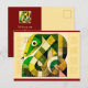Illustration moderne et cubiste d'un serpent aux couleurs vertes. Design sur carte postale de vacances + 2025 + Voeux en chinois et anglais et "Année du serpent" + textes pour customiser à l'intérieur de la carte. Carte de voeux, autocollant (et plus bientôt)... Parfait pour le Nouvel An Chinois du Serpent 2025 élément vert et bois).