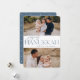 Notre design festif et élégant de carte Hanoukka est la façon parfaite de montrer deux de vos photos de famille préférées. Design caractéristiques "Joyous Hanoukka" en ardoise poussiéreuse typographie serif bleu et écriture manuscrite, avec votre nom de famille. Les cartes retournent à un motif étoilé blanc.