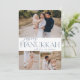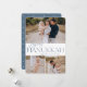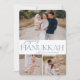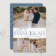 Notre design festif et élégant de carte Hanoukka est la façon parfaite de montrer trois de vos photos de famille préférées. Design caractéristiques "Joyous Hanoukka" en élégante typographie serif bleu ardoise et écriture manuscrite, avec votre nom de famille. Les cartes retournent à un motif étoilé blanc.
