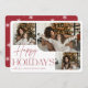Notre design festif et élégant de cartes de vacances est la façon parfaite de montrer trois de vos photos de famille préférées. Le design horizontal ou paysager présente des "Joyeuses fêtes" en typographie rouge et en écriture manuscrite, avec votre nom de famille en dessous.