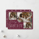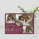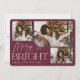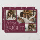 Notre design festif et élégant de cartes de vacances est la façon parfaite de montrer trois de vos photos de famille préférées. Le design horizontal ou paysager présente "Merry & Bright" en typographie blanche et écriture manuscrite, avec votre nom de famille sous un arrière - plan bordeaux.