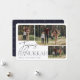 Notre design festif et élégant de carte Hanoukka est la façon parfaite de montrer trois de vos photos de famille préférées. Le design horizontal ou paysager présente "Joyous Hanoukka" en typographie bleue de minuit et en écriture manuscrite, avec votre nom de famille sous un arrière - plan blanc.