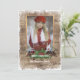 Unique, classique, tendance, jolie et décorative Carte de vacances, avec une jolie couronne fleurie rouge foncé et verte. Avec de la place pour customiser ou personnaliser avec une photo et les noms (ou nom de famille) de votre choix sur un rustique chalet de style campagnard patiné ferme grange planches de bois texture motif. Et une saison personnalisable saluant poème sur le dos de la carte.