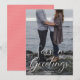Cette carte de vœux de vacances moderne présente une écriture calligraphiée blanche élégante sur une photo plein cadre. Le message sur le devant dit "Seas n' Greetings" ce qui en fait un design parfait pour quiconque recherche un thème balnéaire ou nautique. Ce design accueille une seule photo verticale sur le devant de la carte. Au verso, vous trouverez un motif à rayures diagonales rouges et blanches festives qui peut être supprimé ou modifié. Vous pouvez également ajouter une autre photo ou du texte au verso en sélectionnant l'option "personnaliser davantage".