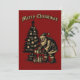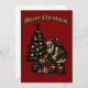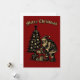 Santa Clause delivering presents under a Christmas tree in a retro woodcut style. You can easily personalize the text and customize the colors with this Christmas card template.