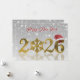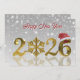 This elegant illustration features the year 2026 in shiny golden typography. The zero is replaced by a detailed gold snowflake, while the final number is decorated with a red Santa hat. The design has a luxurious and festive appearance, making it ideal for Christmas and New Year greetings.