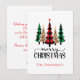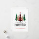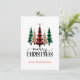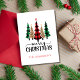 Carte de Noël avec carreau rouge et noir et sapins de Noël en plaid bison vert et noir sur le devant avec un espace pour votre nom. Le verso de la carte comporte un message que vous pouvez modifier.