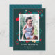 Cute motif floral scandinave en or, rouge & vert profond. Ajoutez votre propre photo pour un carte photo de vacances unique !