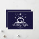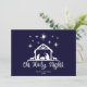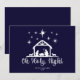 Simple et adorable typographie du script Oh Sainte Nuit avec une crèche sur fond bleu marine. Espace pour votre nom de famille et année. Voir les articles coordonnés tels que le papier d'emballage, les étiquettes-cadeaux ainsi que les variations de cette carte avec des photos dans notre boutique.