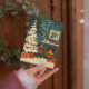 Cartes Pour Fêtes Annuelles Scène de Noël rétro foyer enfant