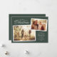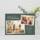 Envoyez la joie de Noël cette année avec cette simple et élégante carte verte de vacances à deux photos. Le beau traitement de type Joyeux Noël est jumelé avec deux photos de style scrapbook. La carte de fête comporte également un espace pour un message personnalisé au-dessus du nom et de l'année. Le fond vert assorti est parsemé d'un motif blanc étoilé.