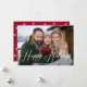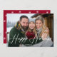 Carte photo de vacances moderne avec "Happy Holidays" affiché dans un script blanc manuscrit superposant votre photo horizontale. Personnalisez le devant du carte photo de vacances avec votre nom de famille et l'année. La carte revient à un motif de flocon rouge et blanc.