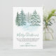 Personnalisez cette élégante carte de Noël non photo en ajoutant un message d'accueil personnalisé et les noms de votre famille. Le design présente de beaux arbres de Noël aquarellés avec un décor de campagne hivernale. Salon "Joyeux Noël" en calligraphie élégante, message de vacances et signature familiale. Sur le côté inverse de l'or confetti sur un arrière - plan vert élégant. Facile à customiser. Joyeuses fêtes !