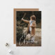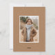 Cartes photos de vacances modernes avec votre photo verticale avec "Joyeux Noël" affiché dans un script blanc manuscrit. Personnalisez la carte photo de Noël avec votre nom de famille et l'année. La carte de vacances photo unique revient pour afficher une photo supplémentaire et un arrière - plan marron-caramel avec des points blancs subtils.