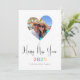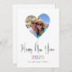 Célébrez le Nouvel An avec une carte de vacances élégante et personnalisable ! Ce design comprend un élégant texte de script moderne associé à un ballon en forme de coeur qui peut présenter votre photo préférée. Remplacez le coeur par une photo de famille, un portrait de couple, une photo d'animal de compagnie ou un instantané de votre enfant. Si la photo ne correspond pas correctement, recadrez-la en forme de carré pour obtenir les meilleurs résultats. Le dos de la carte comprend de l'espace pour ajouter votre message personnalisé, ce qui le rend parfait pour envoyer des voeux chaleureux à ceux qui sont chers.