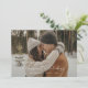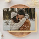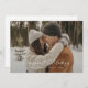 Célébrez votre amour cette saison de vacances avec un carte photo chaleureux et joyeux. Ce design présente un moment de bonheur dans la neige et un script élégant qui dit "Vacances les plus heureuses". Une belle façon d'envoyer l'amour de votre coeur à la leur.