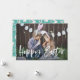 Souhaitez à vos proches une Pâques heureuse avec nos cartes de voeux de Pâques Hoppy mignonnes et élégantes! La carte de Pâques branchée affiche votre photo horizontale préférée avec "Pâques Hoppy" dans une superposition de script blanc et écrit à la main. Personnalisez l'avant de la carte en ajoutant vos noms ou d'autres textes personnalisés. La carte revient à un mignon motif de Pâques de lapins blancs et fleurs de printemps contre un arrière - plan turquoise.