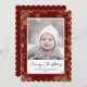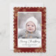 Envoyez des salutations de vacances personnalisables et personnalisées à vos amis, vos collègues et votre famille en cartes photos simples, minimalistes, élégants, amusants, festifs et modernes ! Un beau cadre de variété de flocons d'hiver dorés sur un arrière - plan rouge marron entoure votre photo sur papier rond de coquille Saint-Jacques. Le message de bienvenue "Joyeux Noël" est écrit en calligraphie élégante, et ci-dessous présente votre message de bienvenue personnalisé de votre nom de famille dans la typographie moderne. Reverse pour révéler une belle les flocons de neige d'hiver d'or complet sur l'arrière - plan motif rouge marron.