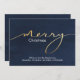 Eau bleu marine classique et élégant arrière - plan avec effet or texte de script fantaisie "joyeux" Noël. Accueillez votre famille et vos amis avec classe et raffinement cette saison de vacances avec cette carte de voeux élégante à plat. Copyright de conception © CustomChristmasPhotoCards.com