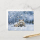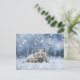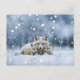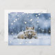 A beautiful Christmas holiday season's greetings postcard of a fox family, mama and two pups, in the snow. A magical image for a magical time of year.