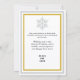 Season's Greetings typography in red italics. Insert Names and Year. Festive snowy Christmas tree and lights. Light gray and gold color geometric border. Greeting message on backside with gray snowflake element. Original Photography Design by TamiraZDesigns.