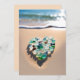 Une image romantique de verre de mer arrangé en forme de coeur, sur une plage de sable brun.