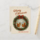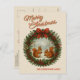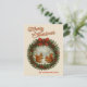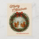 Cette carte postale de vacances de style rétro présente une couronne décorée d'un arc rouge classique, de feuilles verts, de baies rouges, de mistletoe et de deux adorables écureuils. Son design élégant mais rustique saisit à merveille l'essence de la période des fêtes de décembre et séduit ceux qui apprécient les illustrations artistiques. La carte offre également des options de personnalisation, vous permettant de la personnaliser avec votre nom de société, nom de famille ou nom individuel. De plus, vous pouvez inclure un accueil saisonnier personnalisé écrit à la main sur le dos, ce qui en fait un choix réfléchi pour répandre la joie des vacances.