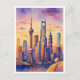 Cartes Pour Fêtes Annuelles Shanghai Skyline Chine Voyage Aquarelle