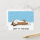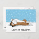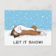 Carte postale de Noël. "Laisse-le neiger !" Le texte peut être personnalisé avec votre propre message. Dessin mignon d'un Shetland Sheepdog roulant dans la neige avec des flocons de neige descendant. Une carte postale de Noël parfaite pour les services pour animaux de compagnie à customiser et à envoyer aux clients, amis et clients. Idéal pour les vétérinaires, les gardiens de chiens et les marcheurs de chiens. Visitez le Doodle World de Jenn pour encore plus de produits avec ce design de chien heureux, ainsi que plus de cartes et cadeaux de Noël de race de chien.