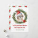 Drôle chien jeu carte de Noël, avec le mignon Shih Tzu en casquette Père Noël, en haut d'une couronne de Noël. Ajoutez votre photo à l'arrière. Tout le texte est modifiable. Vous pouvez supprimer le cadre rayé du côté arrière.