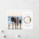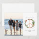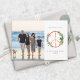 Illustration d'un signe de paix en bois décoré de motifs botaniques de Noël tels que des baies de houx, du sapin et du gui. Personnalisez le nom, l'année et la photo.