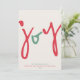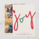 Ces cartes de vœux de fêtes minimalistes de 5" x 7" présentent le vœu « joie » dans une police amusante rouge et verte, ainsi que le vœu supplémentaire modifiable « Je vous souhaite paix, amour et joie pendant cette période des fêtes. » Ajoutez simplement le(s) nom(s) de votre famille et l'année. Ajoutez trois de vos photos préférées au verso de la carte.