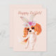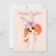 Simple Cavalier avec des oreilles lapins et des fleurs Carte de vacances de Pâques Une carte de voeux mignonne qui rappelle les cartes de Pâques vintages avec une illustration d'un espion King Charles avec des oreilles lapin et une bougie sur sa tête avec les mots Happy Pâques dans belle calligraphie. Une carte idéale pour les amoureux de les chiens et les amoureux du roi Charles Espagnol.