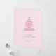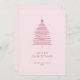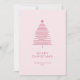 L'image est une carte de vacances minimaliste avec un design simple et moderne de Noël rose pâle. L'arbre est créé à l'aide de lignes fines horizontales empilées en forme triangulaire, diminuant graduellement en longueur au fur et à mesure qu'elles se déplacent vers le haut, formant un arbre stylisé. Une petite étoile se trouve au sommet de l'arbre, apportant une touche festive subtile. Sous l'arbre, il y a un message "Joyeux Noël" dans tous les casquettes avec une typographie propre et élégante.
