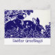 Cette carte postale conçue simplement souhaite à votre destinataire les "voeux de Pâques" en bleu foncé sur un blanc immaculé, avec une illustration - une paire de lapins lapins doux dans un cadre boisé stylisé. Le design et l'accueil sont répétés dans un format plus petit à l'arrière. OEuvre originale et design de Tuzi Williams.