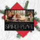 Ces simples cartes de voeux de vacances sont accompagnées de la salutation, "Wishing you a Joyeux Noël and a Happy New Year", ainsi que de la salutation, "Spirit of Peace", en grandes lettres d'ivoire et de rouge sur un arrière - plan noir avec des espaces réservés pour ajouter deux de vos photos préférées, nom de famille et l'année.