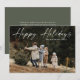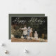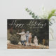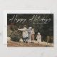 Simple carte de vacances photo de script manuscrit Joyeux Joyeuses Fêtes présente une typographie superposée « Joyeuses Fêtes » écrite à la main sur le devant. Au verso, un message de vacances sincère de la part de la famille. Cliquez sur le bouton Modifier pour personnaliser ce design.