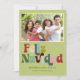 Cette carte de vacances festive amusante présente votre photo préférée, l'image texte "Feliz Navidad" dans une police et des couleurs rétro des années 60, et personnalisée avec votre texte personnalisé sur un fond vert. Le verso présente du texte supplémentaire ou peut être supprimé pour un look épuré. Parfait pour envoyer des vœux de Noël à vos amis et à votre famille.