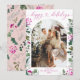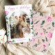Cette carte de vœux moderne présente votre photo préférée avec des éléments botaniques hivernaux élégants en rose et une écriture cœur calligraphiée. Pour apporter des modifications à l'avance, sélectionnez Personnaliser -> Modifier à l'aide de l'outil de conception. La couleur de la face avant de la carte peut être modifiée en changeant la couleur de l'élément Arche.