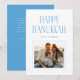 Une carte de vœux photo moderne pour Hanukkah avec un design simple. 'Joyeux Hanukkah' est écrit dans une police sérif moderne et élégante.