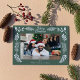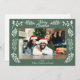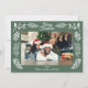 Your horizontal or landscape oriented photo is framed by an assortment of winter greenery and foliage. The snow white botanical accents are set against a sage green background. There's a spot to add your own custom greeting at the top, your own from message below the photo and your own longer message on the reverse side.