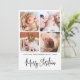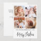 This simple, elegant four-photo college Christmas holiday card template features a crisp, black and white, modern and stylish look. It features four of your favorite family photos, a ´´Merry Christmas´´ greeting in handwritten script calligraphy, and your family name and date in modern font. The reverse features your custom thank you message. Use the intuitive design tools, your favorite photos, and your inspiration, and make this minimalist, elegant multi-photo collage holiday card uniquely yours!