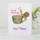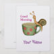 Un escargot est monté à une tasse de café, et avec un grand calme, reposant, il nous souhaite un bon matin. La tasse est de couleur verte avec des points rouges. Quand notre escargot intrépide reviendra au sol, il nous fera un bon après-midi. Vous pouvez customiser le texte en fonction de vos besoins.