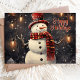 Célébrez la saison des Fêtes avec cette charmante carte de bonhomme de neige, ornée de lumières Edison brillantes qui créent une atmosphère confortable et vintage. Le chapeau classique du bonhomme de neige, le foulard rouge et l’expression joyeuse ajoutent à l’esprit festif, tandis que les lumières scintillantes apportent une touche de chaleur et de nostalgie. Parfait pour diffuser les vacances à la joie des amis et de la famille avec un design unique et chaleureux.