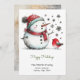 Cartes Pour Fêtes Annuelles Snowman mignon et Oiseau rouge heureux
