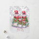 Une belle famille de bonhomme de neige joyeux de quatre avec des accessoires rouges et verts et un GREETINGS de la famille NAME