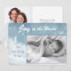 Deux de vos photographies spéciales occupent le devant de la scène sur cette carte de vacances moderne et plate. La photo du devant est encadrée dans un joli fond bleu neige et blanc de style bokeh. Le texte blanc en haut indique "JOIE à la Terre", tandis que votre texte de signature personnalisé est en gris bleu clair sur le côté gauche de la photographie. Le verso de la carte comporte un autre champ de modèle de photo, avec votre texte en gris et bleu sur le côté droit. Élégance simple qui laisse vos photographies briller !