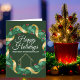 Cette belle carte de Noël d'agent immobilier est personnalisée avec le nom de votre société immobilière sous le nom de l'agent dans une typographie verte et rouge chic à l'intérieur d'une couronne de baies de houx festive avec une guirlande dorée entourant la verdure. Cartes de vacances contemporaines pour le marketing des agents cet hiver.